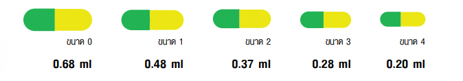 แคปซูลเจลาติน ภายใต้การผลิตของบริษัท แคพซูลโปรดักส์ จำกัด มีให้เลือกหลายขนาด และสามารถเลือกผลิตสีที่ลูกค้าต้องการ พร้อมทั้ง การพิมพ์เพื่อให้สอดคล้องกับแบรนด์ของลูกค้า หรือสร้างความแตกต่างในการทำการตลาด